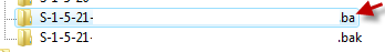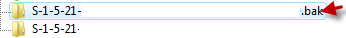 - Si vous avez un seul dossier commençant parS-1-5 suivi d'une longue chaîne de chiffres et fini par .bak, vous devez faire un clic droit sur le dossier, touchez sur «Renommer » pour supprimer .bak à la fin du nom du dossier. Puis touchez sur Entrée.